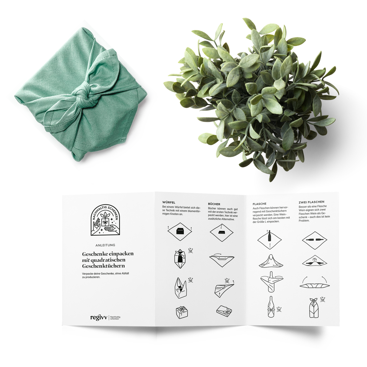 Geschenktücher kommen in unterschiedlichen Größen, als Richtwert sollte das Tuch die 3-fache Größe des Geschenkes haben.